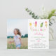 Adorable party invitation's for your little one's summer birthday party feature watercolor popsicle illustrations in vibrant shades of pink and lime green, with "chill out" beneath in whimsical cutout lettering. Personalise with your birthday party details beneath, and add a favourite photo of the birthday girl on the left side. Cards reverse to solid pink.