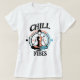 Woman meditating graphic with text, "Chill Vibes" relaxing, enlightened feeling.