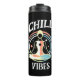 Woman meditating graphic with text, "Chill Vibes" relaxing, enlightened feeling.