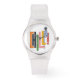 I only have one complaint. I ordered the watch with clear case and strap, and what was sent was white case and strap. I'm going to keep it because 1) it looks very nice in white, and 2) it would take too long to get a replacement made and sent in time for my occasion. Aside from the mix up with the color, the watch does look very good in white. The purple dial is actually sparkly which did not show in the online images. That was a nice surprise. If you like Swatch watches this is very similar to those. It's 33.6mm in diameter, 10.5mm thick, and 40.6mm lug to lug. Stainless steel case back says 3ATM/30m WR, so no swimming or showering or submerging this one. If you like Woodstock, this is a great choice.