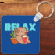 This adorable keychain features a cartoon capybara sitting in an orange pot next to a green plant. The capybara is holding a red book and appears content, with the word “RELAX” above it in bold, light blue letters. This keychain is perfect for capybara lovers and those who enjoy a relaxed, bookish vibe. Made from high-quality materials, it’s a delightful and durable accessory for your keys, bag, or backpack.