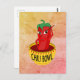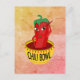A red and hot pepper cartoon character inside a bowl of chilli. Original design.