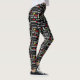 Cool black leggings patterned with the names of different chillies written in white. In between the chilli names are illustrations of colourful chillies.