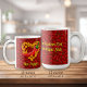 Red chilli pepper with heart shaped flame on removable seamless pattern background. Custom text on both sides.