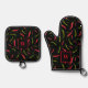 Chilli Peppers Patterned Monogram Oven Mitt & Pot Holder Set