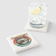 The coasters are gorgeous, a quality feel and heavy weight. They look like a precious archeological find. A rustic stone juxtaposed with a modern floral black and white print. I like the way the print goes slightly imperfect on the cut stone edges giving them a kind-of natural beauty.