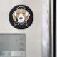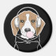 The design features an illustration of a relaxing beagle wearing headphones and blowing pink bubblegum. With your personalised favourite background colour, it makes a cute, funny, and unique magnet.