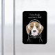 The design features an illustration of a relaxing beagle wearing headphones and blowing pink bubblegum. With your personalised favourite dark background colour, it makes a cute, funny, and unique magnet for dog lovers.