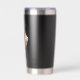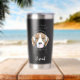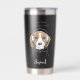 The design features an illustration of a relaxing beagle wearing headphones and blowing pink bubblegum. With your personalised text and favourite background colour, it makes a cute, funny, and unique insulated tumbler.