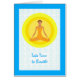 Take Time to Breathe. A female chimp sits in a yoga / meditation pose on the cover of this blank note card. The Om symbol in light blue fills in the background. Digital illustration. Figure element courtesy of qubodup/OpenClipArt. Image and verse copyright © Shoaff Ballanger Studios.