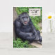 Chimpanzee leaning on rock with green vegetation for humourous 73rd birthday.