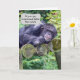 A reclining chimpanzee on rustic logs for getting older birthday humour.