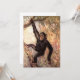 A cute chimpanzee is hanging by one arm in a tree. He has a serious, but mischievous look on his face. The tree and jungle make a subtle background in natural colours including browns, greens, golds, and oranges, among others. Animal lovers, especially chimpanzee fans, will love this detailed and realistic retro animal art.
