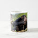 Chimpanzee on plank and eating a bark tree postcar coffee mug