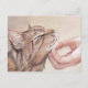 This postcardfeatures a reproduction of my original oil painting of a cat getting a chin scratch.