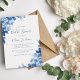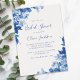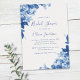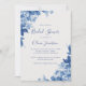 Featuring delicate china blue watercolor florals and an elegant calligraphy script, this modern bridal shower invitation is the perfect way to invite friends and family to celebrate with the bride to be.
