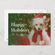 Chinese Crested Dog sitting in basket decorated Holiday Postcard