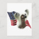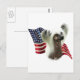 USA! America! Shout your pride with this awesome flag Patriotic background with this AKC dog breed Chinese Crested in the forefront. Show your pride with this design on a t-shirt, mug, keychain, tote, magnet, button or greeting cards.