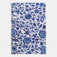 Chinese Dark navy blue floral pattern on white Tea Towel
