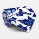 Chinese Dark navy blue floral pattern on white Tie