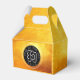 Customisable white ideogram of dog with double black and white circles + white lettering on favour box with customisable golden texture image as background. Other models are available. Matching postcard. Perfect for Chinese New Year of the Dog 2018 or birthday (people born in Dog Year).----- "The Dog (狗) is one of the 12-year cycle of animals which appear in the Chinese zodiac related to the Chinese calendar. The Year of the Dog is associated with the Earthly Branch symbol 戌. The character 狗 refers to the actual animal while 戌 refers to the zodiac animal. (...) People born within these date ranges can be said to have been born in the "Year of the Dog", while also bearing the following elemental sign: