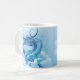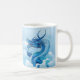 Coffee mug in a fierce Chinese dragon, in shades of indigo blue and white, emerging from the clouds
