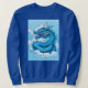 Sweatshirt in a fierce Chinese dragon, in shades of indigo blue and white, emerging from the clouds