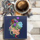 Chinese Dragon Navy Blue Flowers Glass Coaster