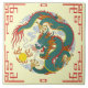 Tile with Chinese Dragon in circular form clutching for a flaming pearl with a pale yellow background and red oriental border design.