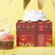 Chinese traditional dragon paper-cut with pattern and red lanterns + wishes in Chinese and English. Design on wrapping paper roll.