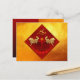 Double golden Horse paper-cut with Chinese lantern and golden Fu ideogram (meaning Luck), blossoms and Chinese greeting into small circles under the Horse + "Year of the Horse" in hand writing style onto a golden textured paper (image printed). Design on horizontal holiday postcard for Chinese New Year of the Horse 2026. Matching greeting card, square sticker, mug, (party supplies and more soon)... Perfect for Chinese New Year of the Horse 2026.