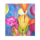 A colourful watercolour painting of Asian Vietnamese / Chinese lanterns painted by visual artist Sacha Grossel. These colourful and bright lanterns of pink, purple and orange are against a bright blue background.