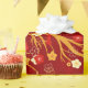 The product features a vibrant, seamless pattern inspired by traditional Chinese motifs, celebrating themes of luck and prosperity. The design showcases golden branches adorned with blossoms and decorative elements, set against a rich red background—a colour often associated with good fortune in Chinese culture.
