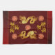 Double Chinese golden Dragon paper-cut + 2x3 other golden Dragons paper-cut with Chinese decorated pattern in the centre on dark red background. Design on kitchen towel. You can easily change background colour by clicking the customise button. Perfect for Chinese and Vietnamese Dragon New Year or birthday (people born in Dragon Year). ------------- "The Dragon (simplified Chinese: 龙; traditional Chinese: 龍) is one of the 12-year cycle of animals which appear in the Chinese zodiac related to the Chinese calendar. The Year of the Dragon is associated with the Earthly Branch symbol 辰, pronounced chen. It has been proposed by one academic researcher that the Earthly Branch character may have been associated with scorpions; it may have symbolised the star Antares." People born within these date ranges can be said to have been born in the "Year of the Dragon", while also bearing the following elemental sign: 22 January 1928 - 9 February 1929 = Earth Dragon,