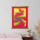 This awesome wood topped wall tapestry features a fractal pattern that looks like a Chinese Dragon. The dragon is a bright vivid shade of red and is surrounded by a fiery yellow background.