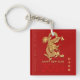 Golden Chinese paper-cut of a Dragon + Happy New Year in Chinese and English, Year of the Dragon and large 2024. Design on square acrylic keychain with monogram to personalise in back on red background. You can easily change background colour and year (font, colour, size and position) by clicking the customise button. Matching greeting card, postcard, sticker and mug.