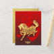 Golden traditional Chinese Paper cut-out of a Horse as central motif with large Chinese ideogram of the horse as background. Design on vertical holiday postcard with texts to customise in back of the card. Matching greeting card. Perfect for Chinese New Year of the Horse 2026.