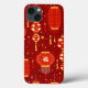 The image depicts a seamless pattern celebrating the festive atmosphere of Chinese New Year. The design is filled with red and gold lanterns in various traditional shapes, decorated with intricate details such as floral patterns, tassels, and Chinese knot symbols. Some lanterns feature golden characters like the Chinese symbol for "fortune" (福), emphasizing themes of luck and prosperity.