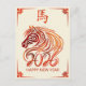 Celebrate the Year of the Fire Horse 2026 with this striking watercolor-inspired design. Featuring a bold red and orange horse illustration with flowing lines that echo fire and motion, paired with the Chinese character for Horse (馬) and traditional corner ornaments, this card is perfect for sending warm Lunar New Year wishes.