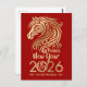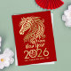 Celebrate the 2026 Year of the Fire Horse with this elegant red and gold folded greeting card. Perfect for sending warm wishes to family, friends, or business clients during Lunar New Year.