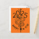 A sketch of a snake wrapped around a tree branch. The snake has its mouth open, revealing sharp teeth. There is the text "2025" written above the snake. Below the snake, there is the text "Happy New Year". The background is a vibrant orange colour.