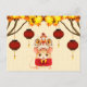 Celebrate the Chinese New Year with this fun design. It features a rat as a lion dancer, a tree with gold and red leaves, globe lanterns, and a traditional scalloped background.