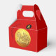 Composition with golden traditional Chinese paper-cut of a Dragon into a golden circle + small modern lettering for Year of the Dragon 2024 and Chinese Dragon Ideogram Symbol onto a small black circle. Design on gable favour box + Business name and address to customise with red background. Available in cube, tent and take-out favour boxes. Matching greeting card, holiday postcard, invitation and more soon. Perfect for Chinese New Year of the Dragon 2024 or birthday (people born in Dragon Year).
