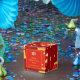 Celebrate Chinese New Year and greet your guests with this gold & red favour box design with red lanterns, gold coins and lion mask!