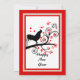 Celebrate with this elegant stylised rooster standing in a blossoming tree. White background.