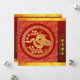 An elegant visual of a golden snake with blossoms into a circle (inspired by traditional Chinese paper-cut) with red circle overlay a red and yellow traditional Asian pattern + graphic "HAPPY NEW YEAR" in Chinese and English and old Chinese calligraphy for "snake" on the right on gradiant red colour band. On the back are the same gradiant background for texts to personalise: your message and name + same golden paper cu-out in small size. Design on square flat card. You can easily personalise this Lunar New Year card by customising the greeting on the back or delete for your handwritten note. Matching greeting card, holiday postcard, round flat card, vertical flat card and square sticker.