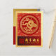 An elegant visual of a golden snake with blossoms into a circle (inspired by traditional Chinese paper-cut) with red circle overlay a red and yellow traditional Asian pattern + graphic "HAPPY NEW YEAR" in Chinese and English and old Chinese calligraphy for "snake" on the right on gradiant red colour band. On the back are the same gradiant background (on the left) for texts to personalise: your message and return address + golden textured paper (image printed) on the right. Design on vertical holiday postcard. You can easily personalise this Lunar New Year postcard by customising the greeting on the back or delete for your handwritten note, type in your return address. Matching real foil holiday postcard.