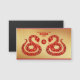 Double Chinese red Snake paper cut-out with yellow Chinese ideogram for Snake in the centre onto a red circle + "Happy New Year" in English and Chinese on golden textured paper (image printed) as background. Design on horizontal magnetic card. Matching greeting card, Holiday postcard, magnet, sticker, craft products and more soon... Perfect for Chinese New Year of the Snake 2025 or Birthday (people born in Snake Year). --------- "The snake (蛇) is the sixth of the twelve-year cycle of animals which appear in the Chinese zodiac related to the Chinese calendar.