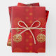 Design n°1: Chinese traditional pattern with golden tiger head paper-cut and golden "Year of The Tiger" in handwritting style.Design n°2 with large red peony and golden tiger par-cut. Design n°3: repeating square pattern with Fu ideogram into Chinese red lantern and Tiger paper-cut. Design on  wrapping paper flat sheet set of 3.