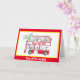 Chinese New Year card for the Year of the Rabbit, designed especially for young children, featuring a bright red double decker London bus being driven by a Rabbit, carrying all of his friends from the Chinese Zodiac on a fun New Year journey - including dragon, pig, sheep, ox, monkey, rooster, dog, rat, horse, snake and rabbit! With a bright red and gold border and a customizable greetings.